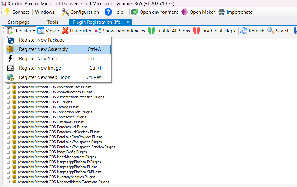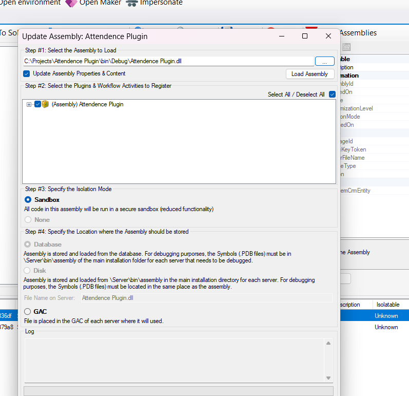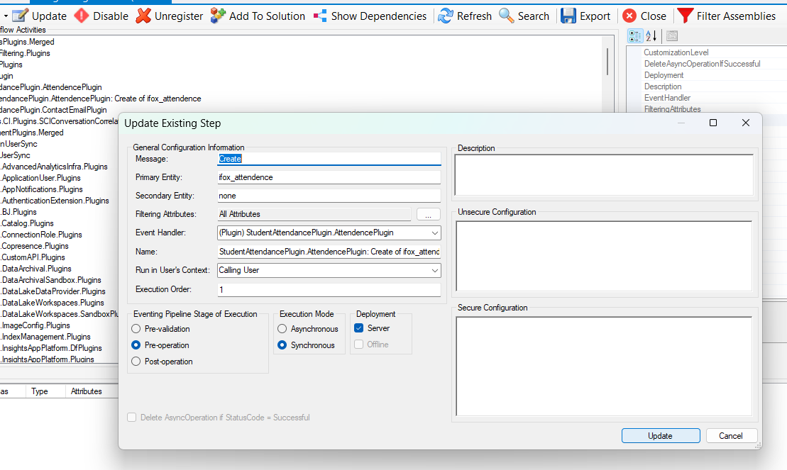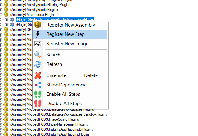 After registering the assembly, we need to create a Plugin Step so the system knows when the plugin should execute.