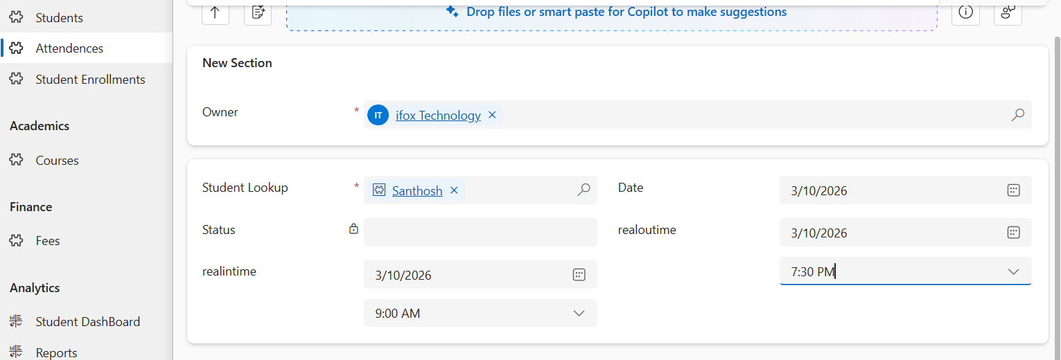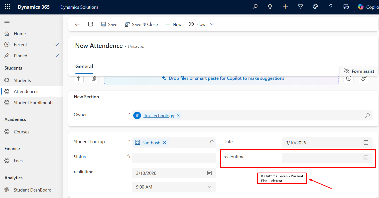 In this article, we will see how to automatically update a student's attendance status as Present or Absent based on whether the Out Time is provided or not.