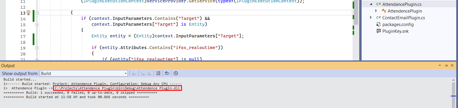 After making changes to the plugin code, rebuild the project in Visual Studio and update the plugin assembly in Dynamics 365.