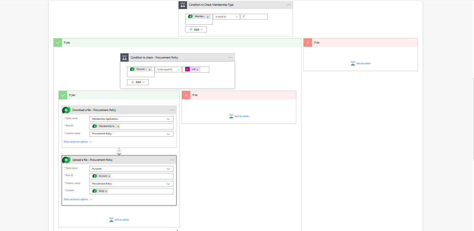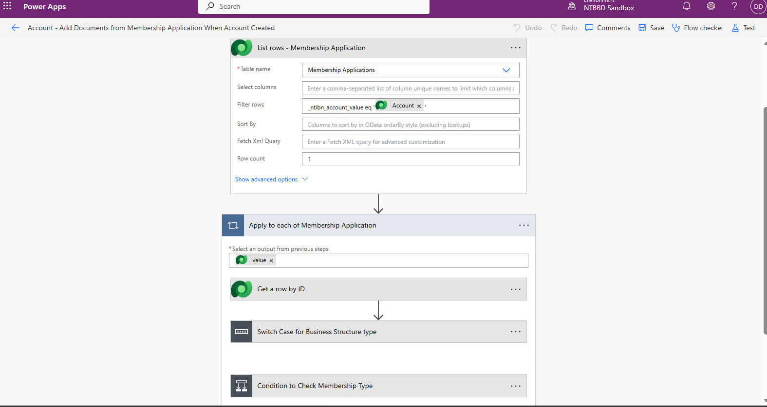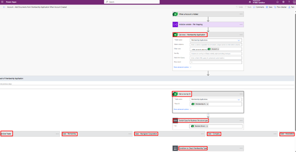 Use List Rows action to fetch Membership Application records related to the Account.