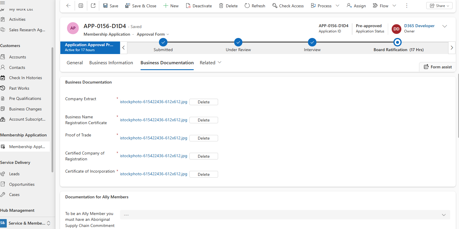 In the Membership Application form, upload required documents such as: Company Extract, Business Registration Certificate, Proof of Trade, etc.